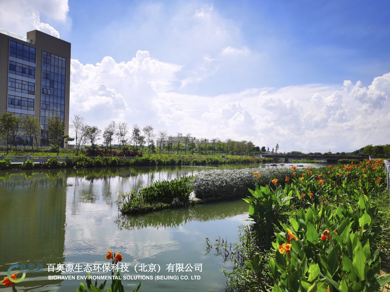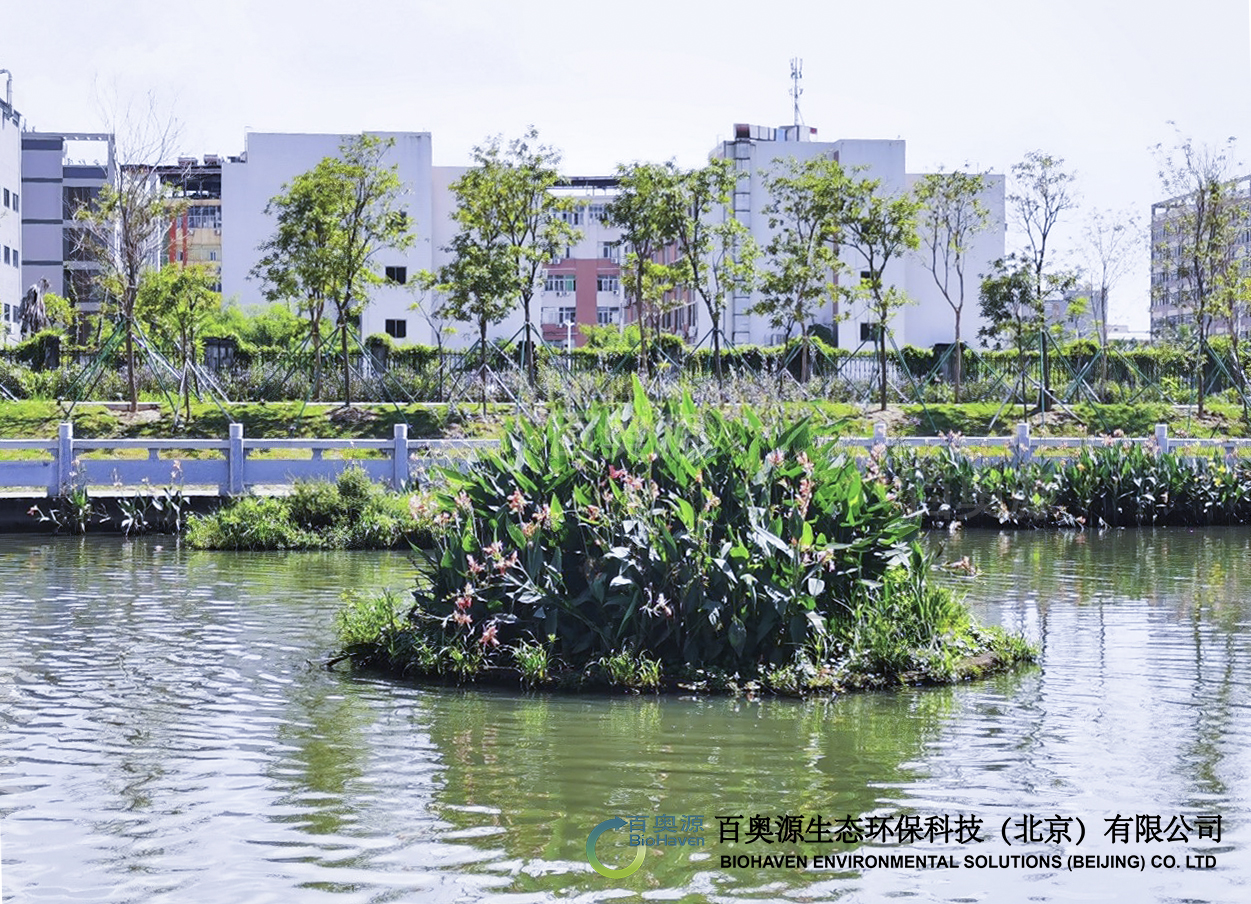 在城市黑臭河道治理中,將浮動(dòng)濕地與循環(huán)增氧等水生態(tài)修復(fù)技術(shù)相結(jié)合,增強(qiáng)水體溶解氧,輔助提升水中污染物降解,強(qiáng)化水質(zhì)凈化,促進(jìn)水生態(tài)系統(tǒng)修復(fù),營(yíng)造城市水上景觀。