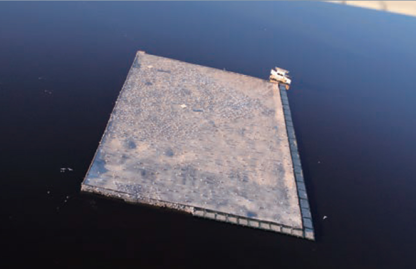 項(xiàng)目以百奧源®浮動(dòng)濕地載體為基質(zhì)在俄勒岡州(Dutchy湖)、加利福尼亞州(Sheepy湖)的兩個(gè)湖泊內(nèi)分別布設(shè)浮動(dòng)棲息地,作為紅嘴鷗生息、繁育場所。浮動(dòng)濕地棲息地以礫石為表面以適應(yīng)紅嘴鷗棲息需求。項(xiàng)目采用百奧源®浮動(dòng)濕地構(gòu)建不僅滿足了水位變化條件棲息地面積不變的要求,同時(shí)大大降低了工程造價(jià)。