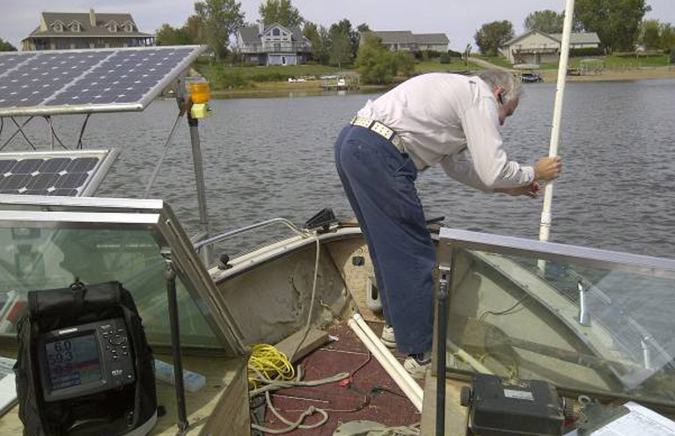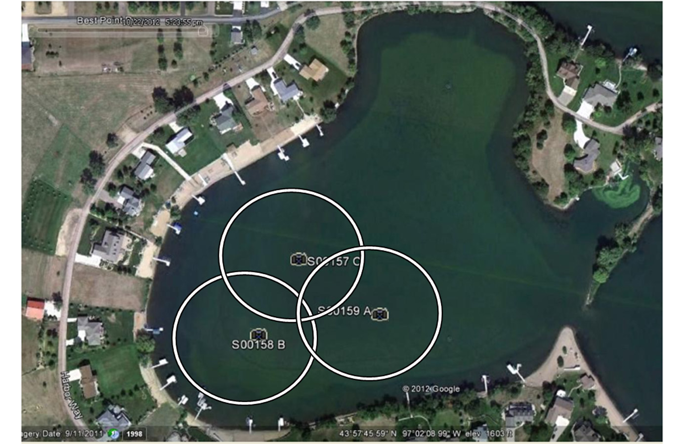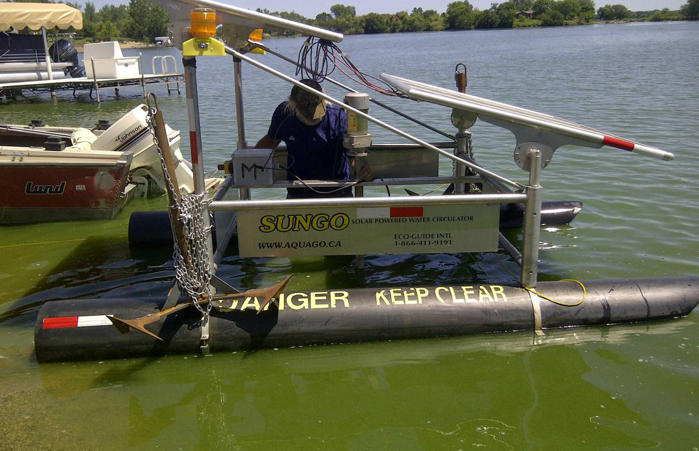 位于美國南達科他州Harbor Bay的Madison湖長期接收周圍農(nóng)業(yè)面源污染、地表徑流和市政污水的污染物入湖,湖底堆積的底泥常年向水中釋放污染物,導致湖體水質(zhì)富營養(yǎng)化嚴重 。2012年6月初由于干旱湖水水面下降,藍藻大規(guī)模爆發(fā)。根據(jù)該項目現(xiàn)場踏勘及底泥調(diào)查結(jié)果,設計將三臺奧科?太陽能循環(huán)復氧設備以三角形點位布設。