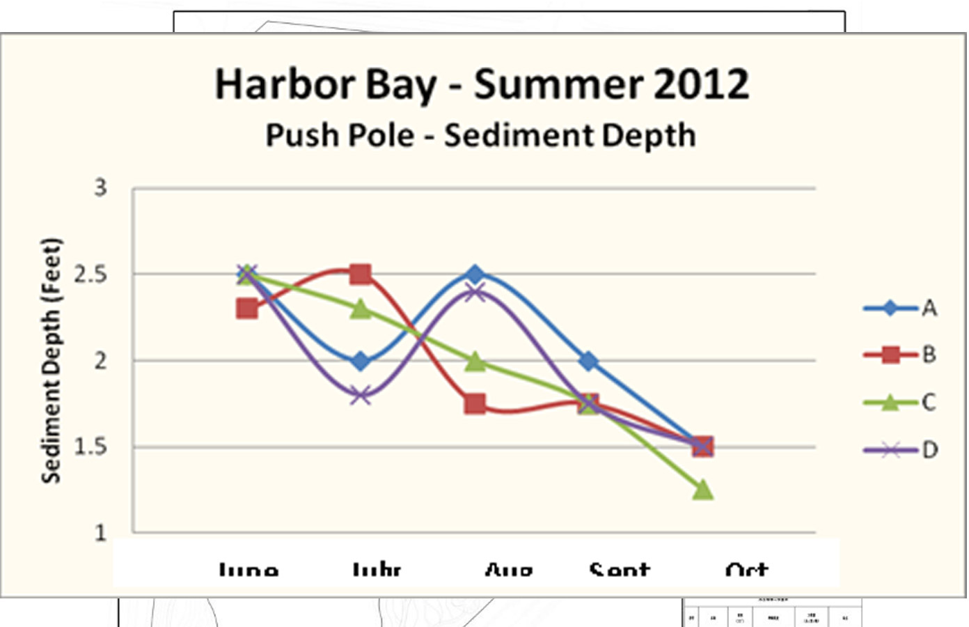 使用奧科?太陽能循環(huán)復氧設備4個月后,對Madison湖的底泥進行測量。測量結(jié)果表明,在奧科?太陽能循環(huán)復氧設備使用后,底泥深度明顯變淺。2012年6月-10月之間,測量點底泥消減量平均為30厘米。