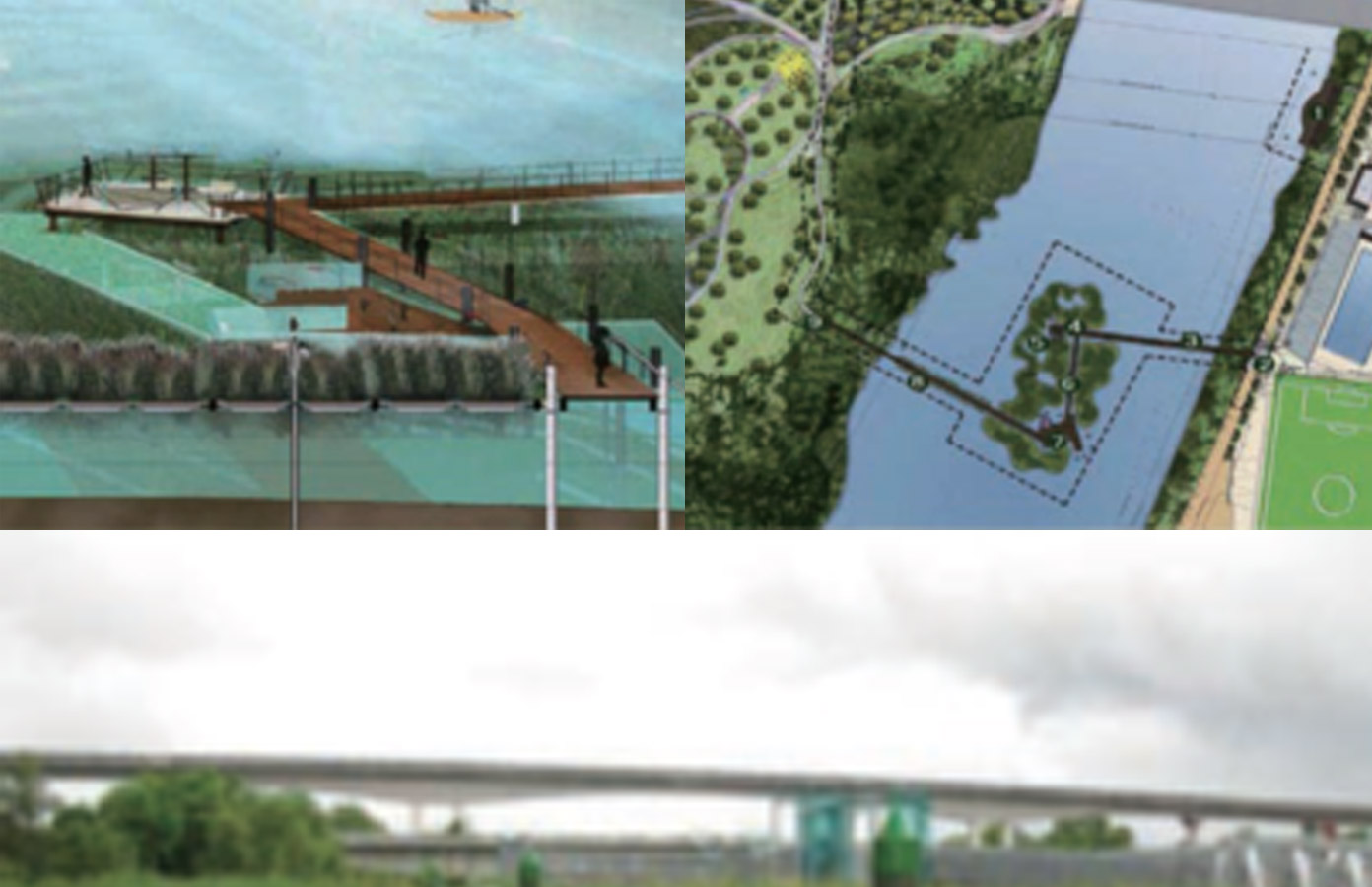 這是一個完全浮在水面的島嶼,大約有半個標(biāo)準(zhǔn)足球場大小,一側(cè)堤岸通過固定的人行橋聯(lián)系,另一側(cè)提案通過浮動的木板走道連接。固定高度的人行橋保證有足夠的凈高開展水上活動,而緊貼水面的浮動木板走道則允許人們真正近距離感受水體。整個項目還創(chuàng)造了一個令人興奮的結(jié)果,為公眾提供了一個全新的親水休閑空間和新的水上休閑活動,并大大加強(qiáng)了水庫兩側(cè)居住社區(qū)的聯(lián)系。