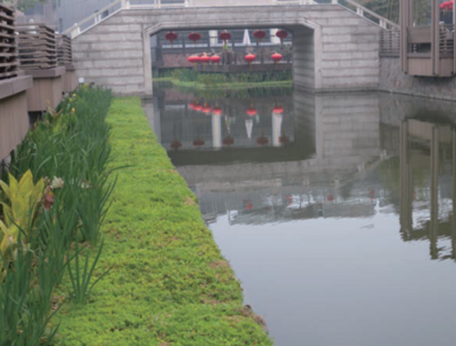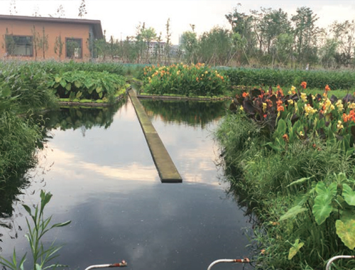 復(fù)合纖維浮動濕地與高效氣溶技術(shù)集成的生態(tài)曝氣氧化池應(yīng)用大大提升了單位水體容量的污染物削減能力,應(yīng)用于污水處理廠退水的升級改造,通過合理配置,結(jié)合人工濕地等工藝,在減少土地用量的同時(shí),能夠?qū)⒊R?guī)排水提升到地表IV類水標(biāo)準(zhǔn)。